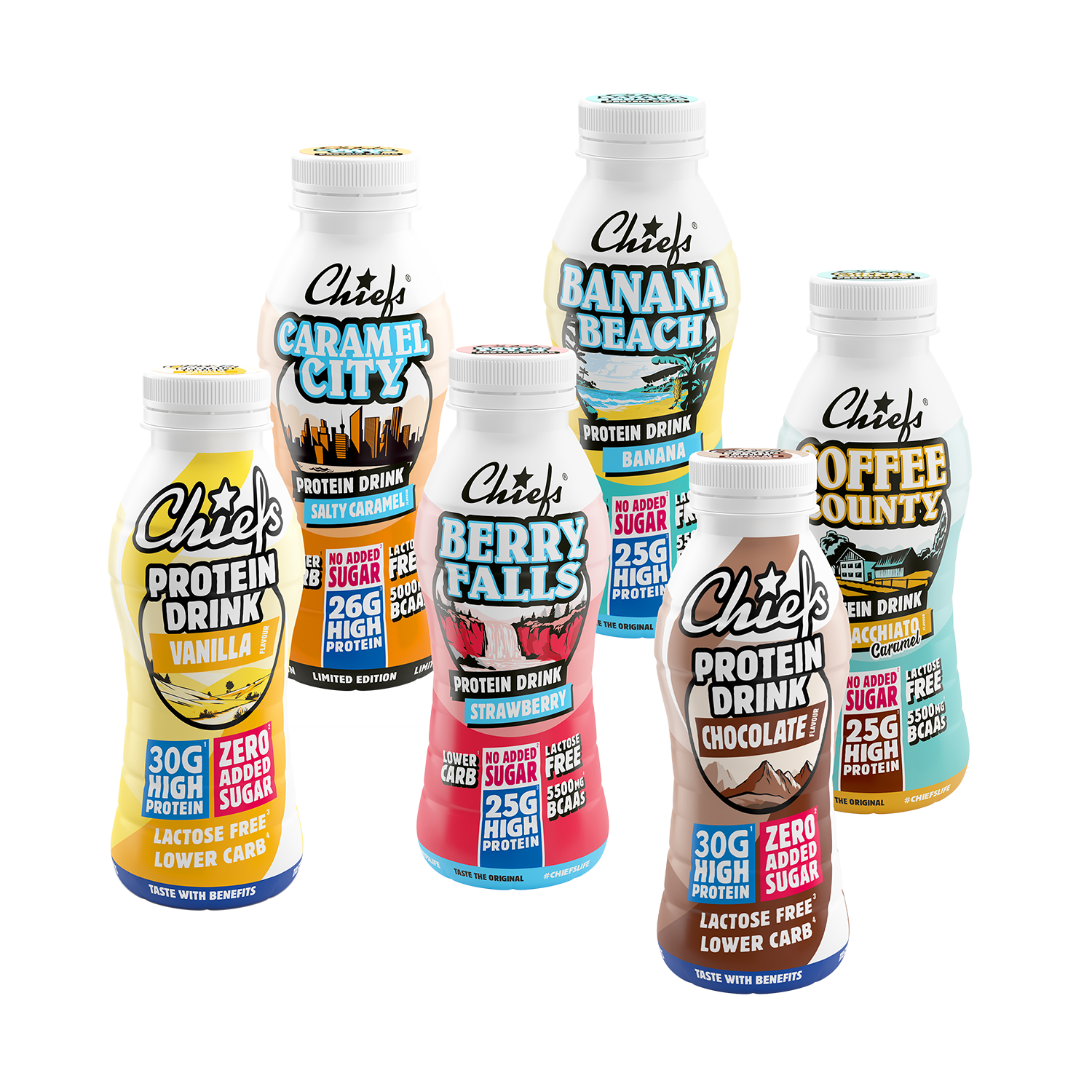 Why always chocolate and vanilla? Get inspired with our tasting pack and find your new favourite flavour. Or simply make someone happy and give them a great Chiefs Protein Drink set as a gift.