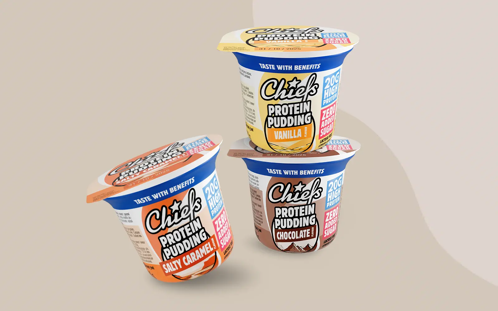 Products Chiefs® stands for excellent nutritional value, real benefits and great taste. Sweet or savoury – our products are a taste sensation for everyone! Protein Drinks Excellent taste combined with high-quality ingredients – for athletes, the health-conscious and all those who love great taste. To the Protein Drinks Protein Soft Bars Soft, chewy, and irresistibly delicious – our Soft Bars offer pure indulgence with high quality protein and no added sugar. To the Protein Soft Bars Performance Drinks With a blend of BCAAs, caffeine, and vitamins, our Performance Drinks support focus, endurance, muscle strength, and recovery – with zero sugar and zero calories. To the Performance Drinks Protein Puddings Our puddings contain lots of protein and no added sugar. They’re lactose- and gluten-free. Dessert without regret! To the Protein Puddings Protein Bars Crispy on the outside, soft on the inside and covered in the finest chocolate. The best part: Each bar gives you a solid portion of protein. To the Protein Bars Protein Core Bars Dessert with benefits: A creamy soft core and a crunchy coating with the finest chocolate – a true high protein dessert! To the Protein Core Bars Protein Wafer 100% indulgence, 0% compromise: Crispy wafers coated in the finest chocolate with high quality protein and no added sugar! To the Protein Wafer Protein Chips No more doubts: Crunchy chips with ultimate flavor and 70% less fat. To the Protein Chips Protein Ice Cream Our ice cream is not only incredibly delicious and lactose-free, but also contains an incredible 85% less sugar than conventional ice cream. To the Protein Ice Cream Whey Protein Our protein powders consist of high-quality whey proteins, have a high BCAA content and are enriched with valuable vitamins and minerals. To the Whey Proteins