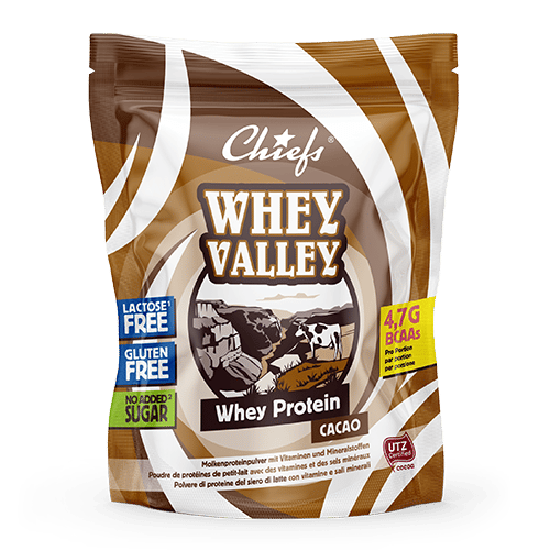 Whey Protein Nos poudres de Whey Protein sont fabriquées à partir d’isolat et de concentré de protéines de lactosérum de haute valeur biologique, ont une teneur élevée en BCAA et sont enrichies en vitamines et minéraux. Chocolate Vanilla Poudre de protéines de lactosérum Chiefs Les boissons protéinées sont un moyen pratique et savoureux d’obtenir votre dose quotidienne de protéines. Mais avec les boissons pré-fabriquées, vous ne pouvez pas personnaliser votre shake à votre guise. C’est là qu’intervient la poudre de protéines de lactosérum. La poudre de protéine de lactosérum pure de Chief facilite encore plus la préparation de vos propres shakes protéinés sains à la maison. Qu’est-ce que la protéine de lactosérum ? La protéine de lactosérum est un terme que vous avez peut-être déjà rencontré, sans pour autant savoir ce qu’elle décrit réellement. Le lactosérum est un liquide qui se dissocie du lait de vache pendant le processus de fabrication du fromage. La protéine de lactosérum est le composant protéique de ce sous-produit et est disponible sous diverses formes en poudre. Types de protéines de lactosérum Concentré Le type de protéine de lactosérum le plus abordable et le plus facilement disponible est le concentré. C’est le composant liquide qui se dissocie du fromage en grains durant le processus de fabrication du fromage. Le liquide est séché et vous obtenez ainsi le concentré de protéines de lactosérum en poudre. Il s’agit principalement de protéines, avec une très faible teneur en glucides. C’est une forme courante de protéine de lactosérum apparaissant dans la fabrication d’aliments sains comme les boissons protéinées et les barres protéinées. Isolat L’isolat de protéines de lactosérum est une source de protéines de lactosérum ultra-raffinée et de haute qualité. Il est produit en raffinant davantage le concentré de lactosérum, ce qui garantit un profil riche en nutriments avec plus de 90 % de protéines par portion. Ce processus de filtration supplémentaire produit des protéines de lactosérum très pures avec peu ou pas de graisses, de glucides, de lactose et de cholestérol. Hydrolysat L’hydrolysat de protéines de lactosérum est un isolat ou un concentré de protéines de lactosérum qui a été exposé à la chaleur, à des enzymes ou à des acides pour décomposer certaines des liaisons amino. Cela permet une absorption plus rapide et une digestion plus facile par le corps. Comme l’isolat de protéines de lactosérum, il contient plus de 90 % de protéines et peu ou pas de matières grasses, de glucides ou de lactose. Qu’est-ce qui rend la protéine de lactosérum si spéciale ? Polyvalence Fabriquer ses propres shakes protéinés à la maison permet de bénéficier d’une grande polyvalence. Vous n’avez qu’à ajouter de l’eau, du lait ou une alternative au lait à base de plantes à notre protéine de lactosérum pour faire un shake nutritif. Mais pourquoi s’arrêter là ? Jouez la carte des mélanges et ajoutez d’autres ingrédients sains comme de la purée de banane, des fruits secs ou de la crème d’avocat. C’est une question de choix.Vous seul décidez de ce que vous mettez dans vos shakes protéinés. Gardez à l’esprit, cependant, qu’en ajoutant d’autres ingrédients, vous ajouterez des calories, ainsi que des graisses et des sucres éventuels. Cela peut être la meilleure solution si vous essayez de vous reconstruire après une période stressante de la vie et que vous avez besoin de calories supplémentaires et de densité nutritive. Mais, il est déconseillé de suivre un régime hypocalorique. Si vous êtes à la recherche d’inspiration, consultez simplement nos délicieuses recettes. Toutes les recettes incluent un guide de préparation étape par étape ainsi que toutes les informations nutritionnelles. Santé tous azimuts La protéine de lactosérum est une forme de protéine de haute qualité qui contient des acides aminés essentiels nécessaires à une santé optimale. Comparée à d’autres sources riches en protéines, elle est généralement très facile à digérer. Les végétariens, qui souffrent d’une carence en protéines provenant des viandes, bénéficieront de la poudre de protéines de lactosérum. Cependant, il ne convient pas aux végétaliens, car il s’agit d’un dérivé laitier. D’autres sources de protéines, telles que le soja, seraient plus adaptées aux végétaliens. Indispensable pour les athlètes et les fans de culturisme Pour construire, entretenir et réparer des muscles, vous avez besoin de protéines. Et vous en avez davantage besoin si vous ne vous entraînez pas tous les jours. La poudre de protéine de lactosérum pure Chiefs est l’une des meilleures sources de protéines alimentaires, ce qui la rend fantastique pour tous les amateurs de gym et les athlètes ayant un besoin plus élevé de protéines. Convient aux personnes souhaitant perdre du poids C’est aussi la source de protéines de choix pour ceux qui suivent un régime amaigrissant. En effet, la protéine de lactosérum est très rassasiante et peut aider à réduire l’envie d’en-cas mauvais pour la santé. Avec la protéine de lactosérum, vous vous sentirez rassasié plus longtemps. Renforce la fonction antioxydante Vous avez probablement entendu parler de l’importance des antioxydants dans votre alimentation. Ils réduisent le stress oxydatif dans le corps et le risque de maladies chroniques. L’un des antioxydants les plus importants, le glutathion, est produit par votre corps. Mais sa production repose sur un apport constant d’acides aminés tels que la cystéine. La protéine de lactosérum est un aliment riche en cystéine et joue donc un rôle dans la résistance de notre corps aux maladies chroniques grâce à la production d’antioxydants. Convient à de nombreux régimes différents Nos poudres de lactosérum pur Chiefs 